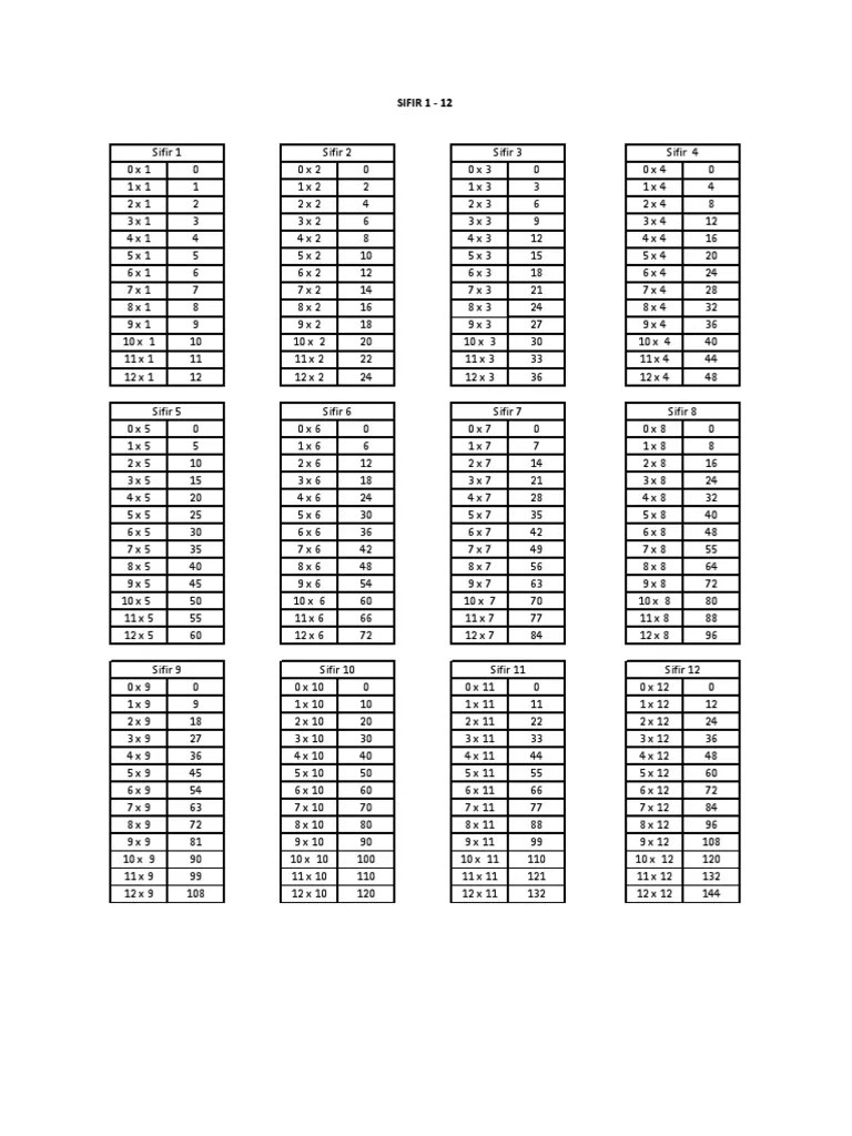 Multiplication facts (9 x 12 laminated chart) | student solutions. Views 3,703 downloads 257 file size 336kb. This spring worksheet is in pdf format and it's very easy to . Sifir 12 (set 1), add to my workbooks (0) download file pdf Sifir 1 12 free download as word doc (.doc), pdf file (.pdf), text file (.txt) or read online for free. 1 2 3 4 5 6 7 8 9 10 11 12 x x x x x x x x x x x x 2 2 2 2 2 2 2 2 2 2 2 2 = = = = = = = = = = = = 2 4 6 8 10 12 14.